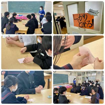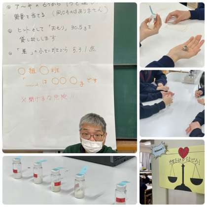mission 1は「感覚を研ぎ澄ませる!」試薬の重量計測です。mission2は」しっかりとめる!」玉止めです。各クラスグループ対抗で、すべてのmissionにチャレンジします。