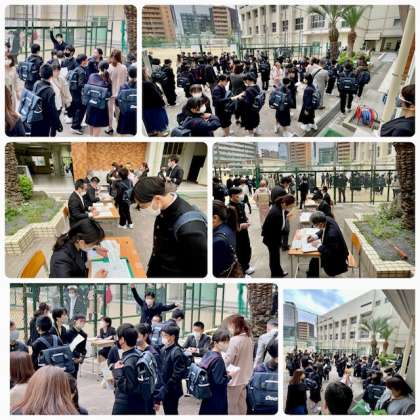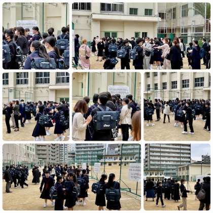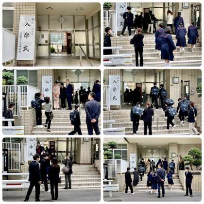 新入生は教室で入学式の説明を受けました。保護者の皆様は体育館に入っていただきました。