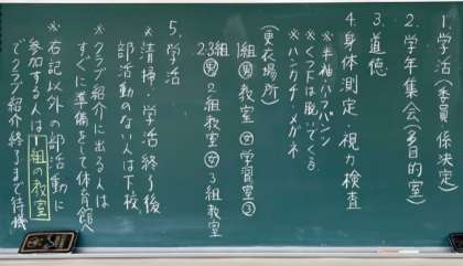 3年生の学年黒板です。どのクラスの生徒も1日の予定がよくわかります。