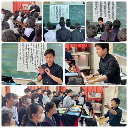1年1組 音楽の学習です。沖先生の授業は楽しいですね。先生につられてニコニコとしっかり歌声が響いています。