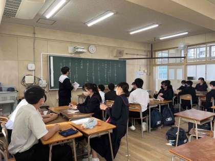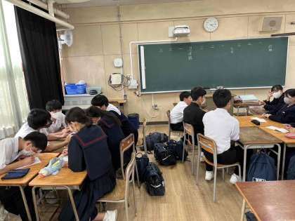 こちらは体育委員会です。前期の体育委員としての目標と5月の月間目標の具体的な取り組みを話い合いました。