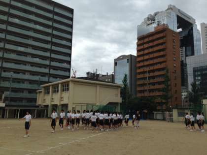 体育大会の学年練習が始まりました。本日は1・2時間目3年、3・4時間目2年、5・6時間目1年の練習です。写真は2年生の行進練習のようすです。