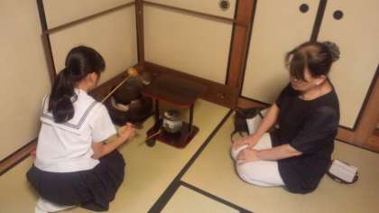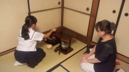 地域の方のご厚意で、お茶室でお稽古させていただきました。