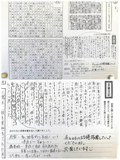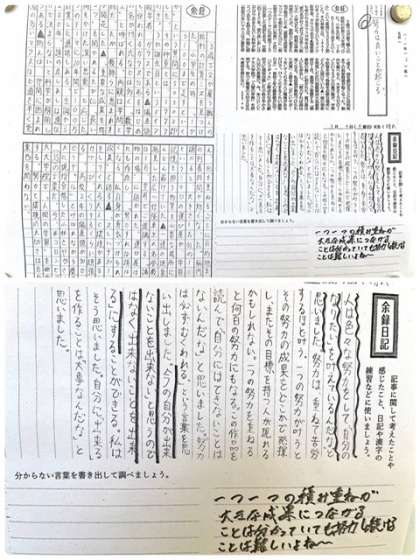 どの学年も、本文を読んでタイトルがよく考えられていると思いました。また、余録日記の欄に自分の考えを、自分の言葉でうまくまとめられていました。力量の向上が見られます。