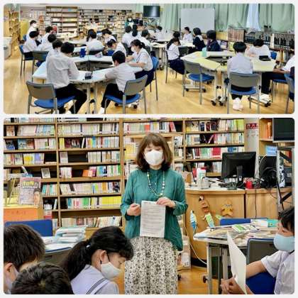 1年生は学校図書館司書の仲先生から図書館の了解についてオリエンテーションを受けました。仲先生は、校区小学校でも学校図書館司書をされていらっしゃいます。本好きの生徒がたくさん増えることを願っています。