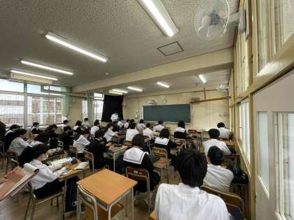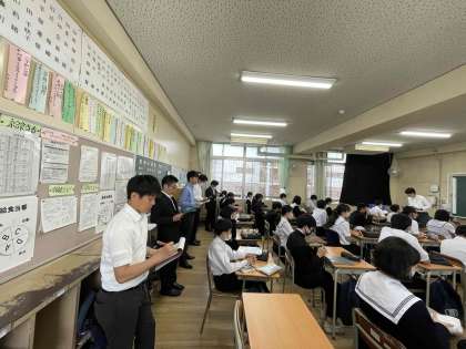 1限、2年3組美術の授業で、たくさんの先生方が参観されています。