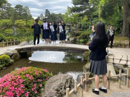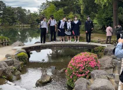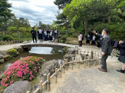 兼六園 琴柱灯籠前で