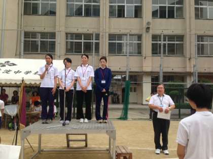 本日より5日間、大阪医専で学んでいる4名の学生が本校で、養護教諭の仕事を学ぶための実習を行います。体育大会予行の途中で紹介がありました。
