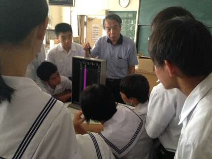 来週の体育大会に向けての準備や練習の記事が多くなっていますが、普段の授業も変わりなく進められています。写真は本日の1年生数学と、2年生理科の授業の様子です。1年生数学は黒板とICT機器を併用した授業でした。2年生理科は真空放電の実験演示をしながらの授業でした。