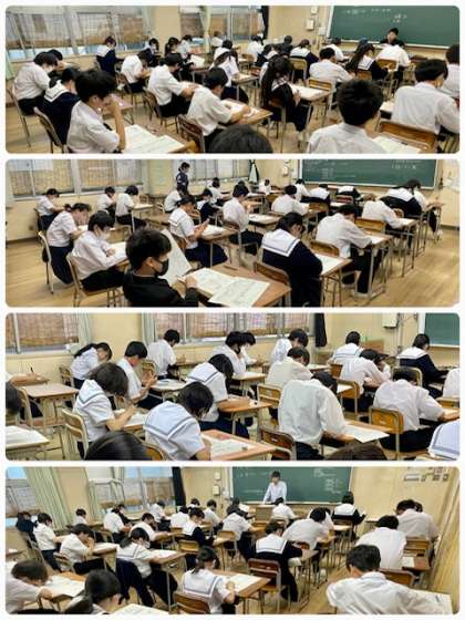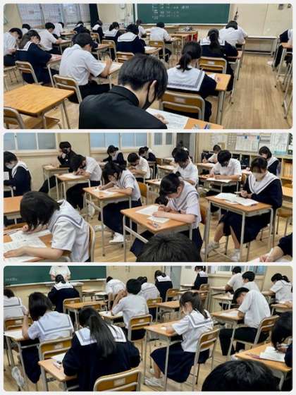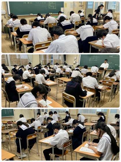 中間テスト第2日目の様子です。台風の影響で大雨が降っていますが、生徒の皆さんは今日もしっかりと力を出してくれたことと思います。