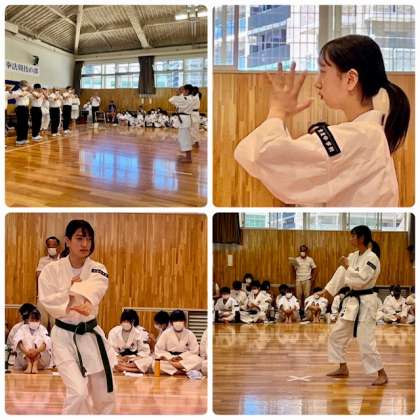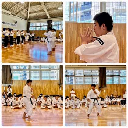 単独演舞の部です。男子単独演舞には2年大坪選手が、女子単独演舞には2年高橋選手が演技を行いました。