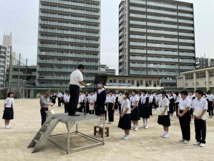表彰伝達です。春季総体、少林寺拳法部の単独演武、入賞です。