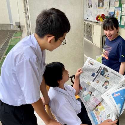 生徒の皆様、どうぞ新聞を読んでください!いつでもベンチに座って読んでください。