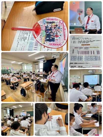 本日6時間目は、高等学校から先生をお招きして「3年高校出前授業」を行いました。