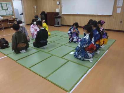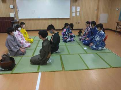 本日、茶道部では、浴衣の着付けをしてから、着物でお点前をする時の所作を教わりました。