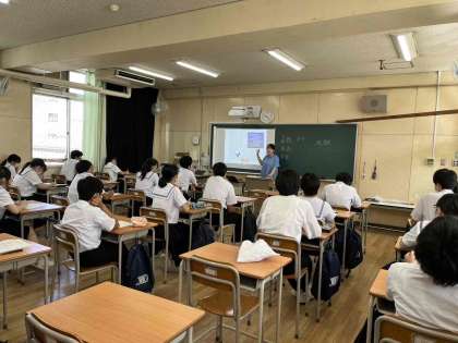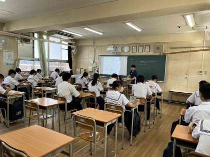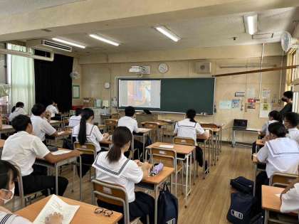 沖縄戦の内容と体験者の映像を使って、平和について学習しています。