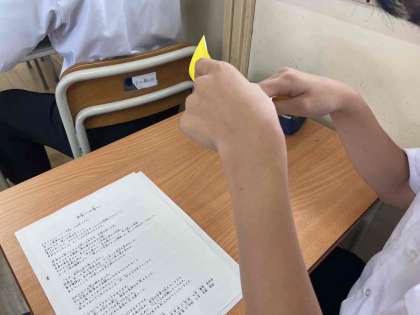 最後は、教室に戻りワークシートを書きあげ、その後、平和を祈念して、折り鶴を折りました。千羽鶴を降りながら、仲間意識も育成しました。