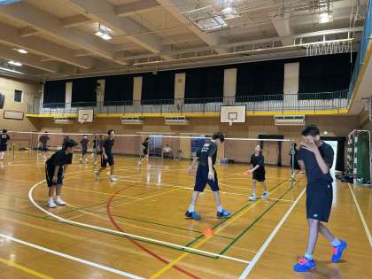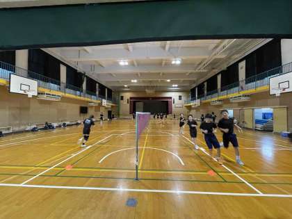 午後からは体育館にて、バドミントン部が練習を開始しました。全員でランニングです。