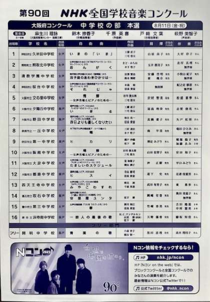合唱部は、本日8月11日(金・祝)NHK大阪ホールで開催されている。NHK全国合唱コンクール大阪府コンクール中学校の部本選大会に出演します。