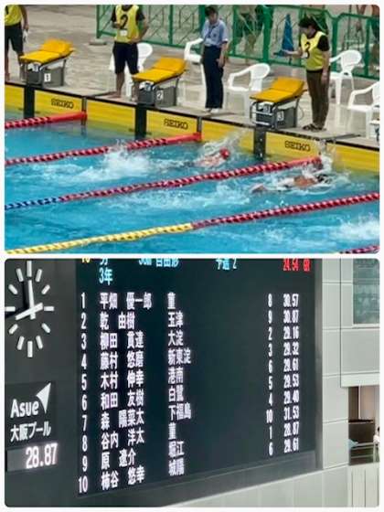 柳田くんが50m自由型に出場しました。予選2位でした。