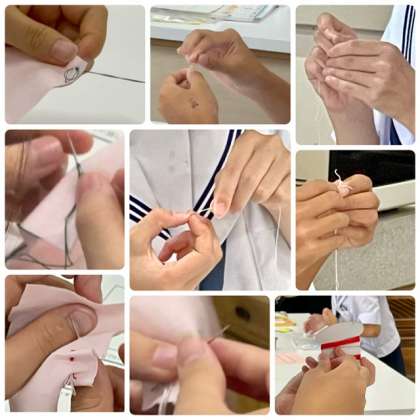 授業の最初は、前回の授業で学習した、玉どめに挑戦しました。とても真剣に取り組んでいました。