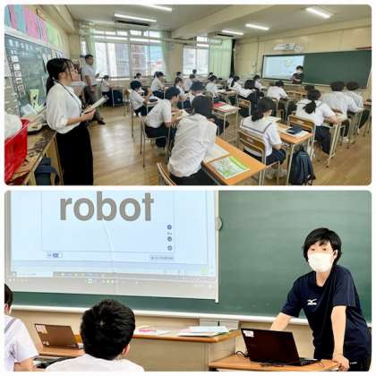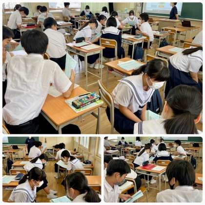 1時間目、3年1組で寺島先生の英語科研究授業が行われています。