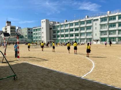 9月10日(日)令和5年度大阪市中学校秋季総合体育大会ハンドボール部門の予選リーグ戦に出場しています。今日は第2日目となりました。今日の対戦は、住吉第一・大正中央・市岡東の合同チームです。大淀中学校は、新東淀・新北野との合同チームです。