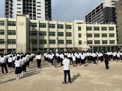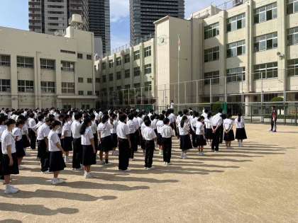 講話では、今週から始まる体育大会練習での熱中症予防の話、困難に自分で立ち向かう力の育成についての話がありました。また、体育大会の係や校則についての連絡もありました。