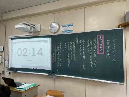 1限、2年3組で国語の授業です。単元はビブリオバトル(本の紹介、プレゼン)です。