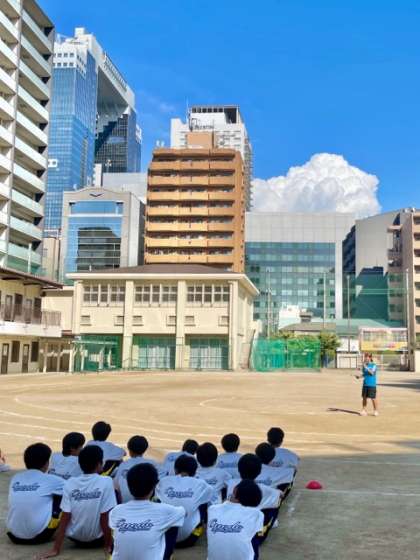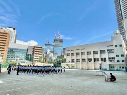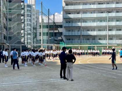 6時間目は、1年生が体育大会学年練習をしています。日差しはきついですが、風が心地よいです。
