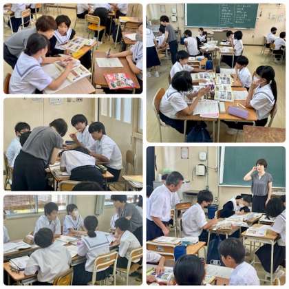 個人で考えをワークシートに記入したあと、グループで話し合い学習を進めました。とても良い意見が活発に出せるクラスです。学びが深まっています。