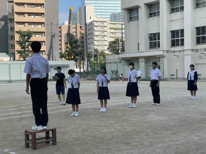 生徒会は開会式と閉会式の位置確認、出発係はスタート位置と合図の確認です。