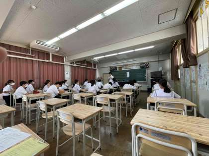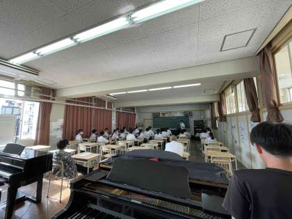 6限、1年2組、音楽の授業です。歌唱と鑑賞の工夫を凝らした内容で、しっかりと生徒とめあてを共有した授業でした。