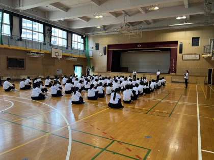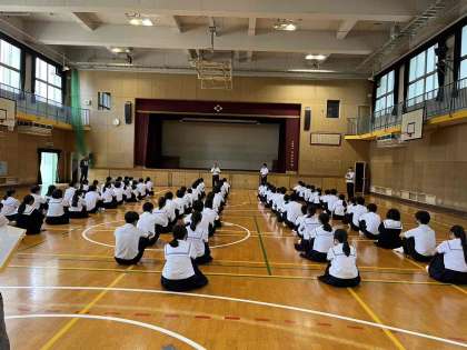 毎週火曜日は3年生の学年集会です。学年の先生より、聴くことの大切さについてのお話がありました。