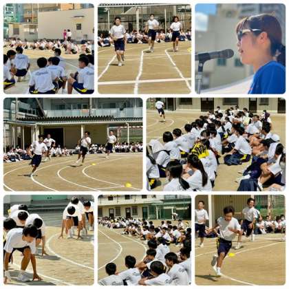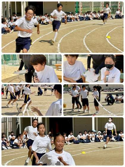 開会式に引き続き、それぞれの競技の予行練習です。係生徒も実際に練習しています。