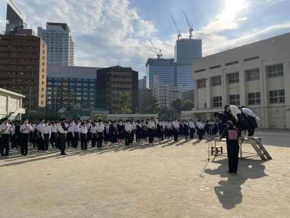 生徒会前期役員の挨拶と後期の役員の認証式です。