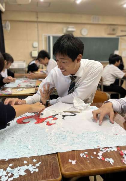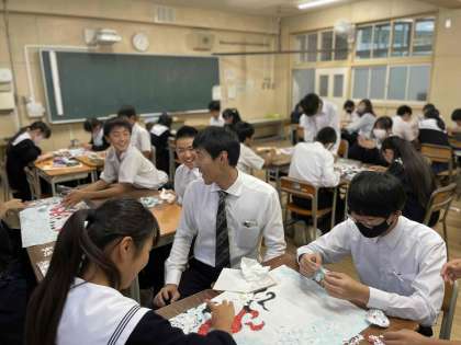 1年4組です。担任の先生も、作業に参加され、とても楽しそうです。