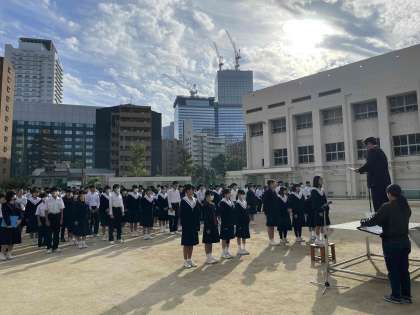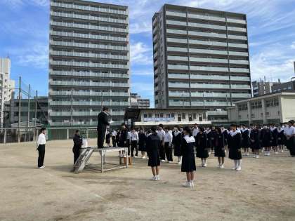 表彰伝達は、美術部門、技術工作部門と家庭手芸部門で、賞状をもらった生徒全員、前に出て行いました。