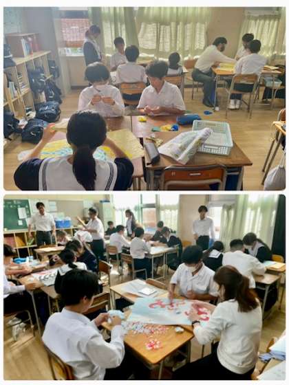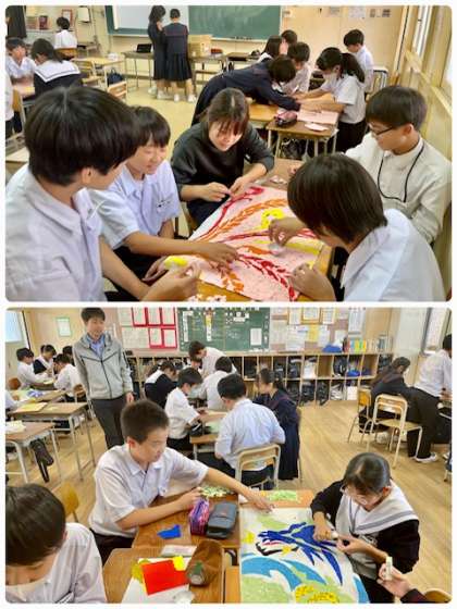 今週、金曜日は文化祭です。6時間目文化祭の取組がありました。1年生は共同制作で、ちぎり絵を制作していました。和気藹々で楽しそうです。