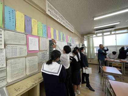 班活動で、それぞれ重りを吊るして座標を求めています。