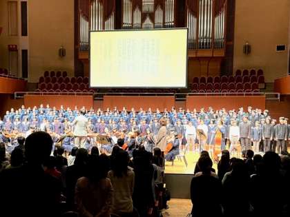 授業を終えた合唱部の生徒が、近畿音楽教育研究大会大阪大会のフィナーレに出演しました。