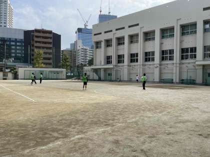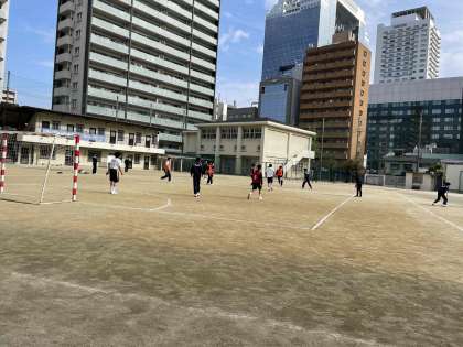 気温は13度ですが、生徒たちは元気にサッカーをしています。