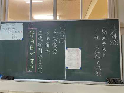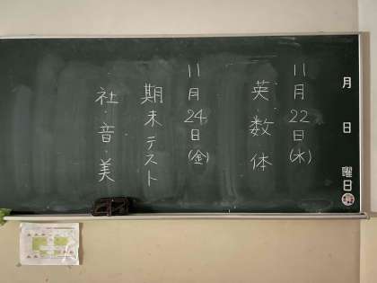 3年生が保体と技家、1年生と2年生が音楽と美術です。