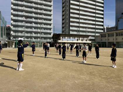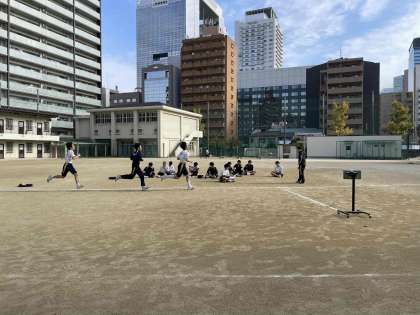 2限、保健体育(男子)の授業です。持久走1000mをおこないました。身体を温めて代謝を促し、しっかりと体力をつけてください。