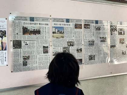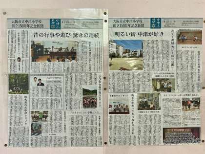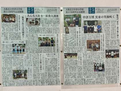 大淀中学校の掲示板には、先日挙行された中津小学校創立150周年記念式典で戴いた新聞を掲示させていただいています。