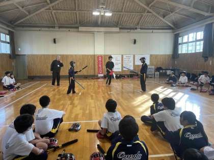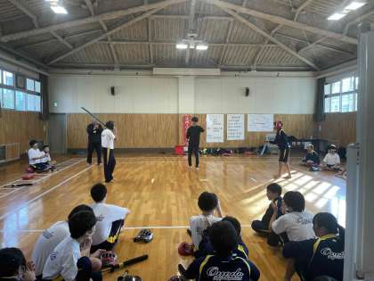 1年生の生徒が、レザークラフト、水墨画、スポーツリズムトレーニング、将棋、焙りたてコーヒー講座、スポーツチャンバラの6講座に分かれて、講座を受けました。