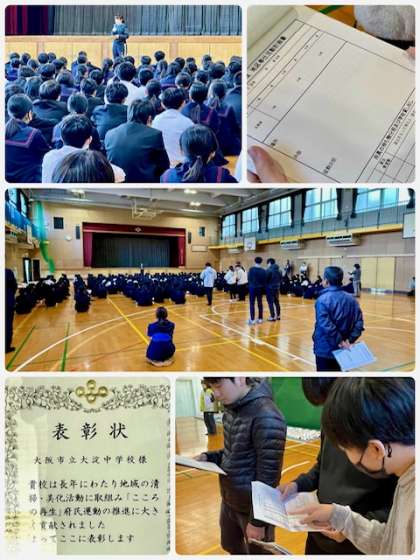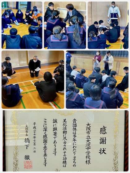 この行事は、大淀中学校の特徴的なもので過去何度も、大阪市長様、教育長さま、大阪府教育委員会からも表彰されています。