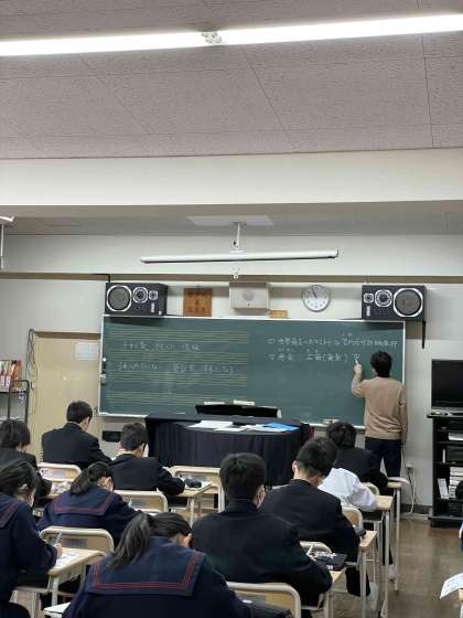 3限、1年3組、音楽の授業です。単元は、雅楽です。