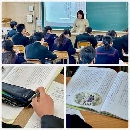 1年4組の道徳の学習です。いよいよ本日から3学期の学習が始まりました。生徒の皆さんは元気に登校しました。