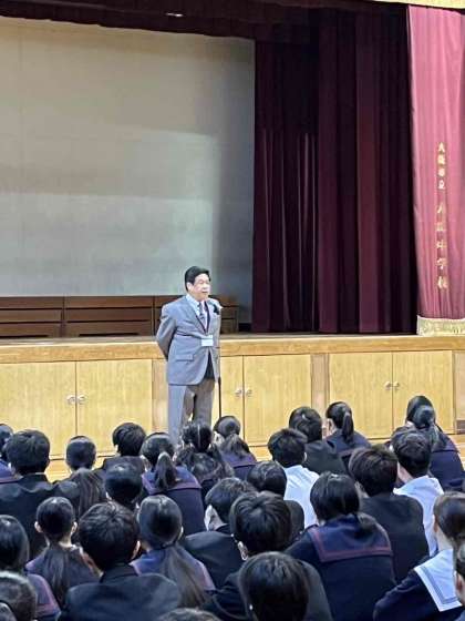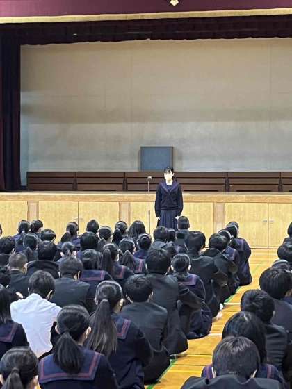 校長先生からは「地震にあった石川県の中学校は避難所となっているため、学校で授業を行うことができない。」「中学生のみなさんにとって1日1日は大変貴重です。」「皆さんは当たり前に行える毎日に感謝し、着実に夢を叶えてください。」とお話がありました。